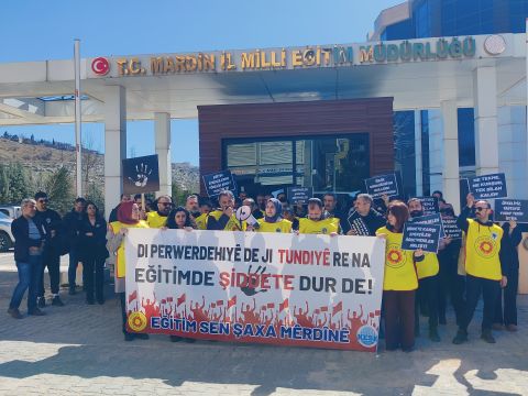 İş Bırakma Eylemi, Öğretmene Şiddete Hayır![]() 2 Mart Pazartesi günü İstanbul Çekmeköy Taşdelen Borsa İstanbul Mesleki ve Teknik Anadolu Lisesi’nde gerçekleştirilen bıçaklı saldırıda iki meslektaşımız ve bir öğrenci yaralanmış, yaralanan arkadaşlarımızdan biri tüm müdahalelere rağmen yaşamını yitirmiştir. Bugün burada yalnızca aramızdan koparılan arkadaşımız için değil, yıllardır göz ardı edilen itibarımız ve can güvenliğimiz için toplandık. Yaşamını kaybeden meslektaşımızın ailesine, yakınlarına, öğrencilerine ve tüm eğitim emekçilerine başsağlığı diliyoruz. Yaralanan öğretmen arkadaşımıza ve öğrencimize acil şifalar diliyoruz. Ancak açıkça ifade ediyoruz: Bu saldırı münferit değildir. Okullarda artan şiddet vakaları uzun süredir ciddi bir tehdit oluşturmaktadır. Yaptığımız uyarıları dikkate almayarak, kalıcı ve önleyici politikalar hayata geçirmeyen Milli Eğitim Bakanlığı bu olayın birinci derecede sorumlusudur. Somut ve kalıcı adımlar atılmadığı için şiddet ortamı giderek derinleşmiştir. Bir okulda kesici aletle saldırı gerçekleştirilebilmesi, güvenlik mekanizmalarının yetersizliğini açıkça ortaya koymaktadır. Okullarda şiddeti önleyici destek mekanizmaları ciddi biçimde gözden geçirilmelidir. Şiddetin zemini yalnızca bireysel bir öfke değildir. Medyada, siyasette ve bürokraside giderek meşrulaştırılan sert ve kutuplaştırıcı dil; eğitim emekçilerini hedef gösteren, itibarsızlaştıran ve yalnızlaştıran söylemler bu iklimi beslemektedir. Öğretmenlik mesleğinin sistemli biçimde değersizleştirilmesi, eğitim emekçilerinin kamuoyu önünde haksız biçimde suçlanması ve sorumluluğun sürekli öğretmene yüklenmesi öğretmenleri hedef haline getirmektedir. Ayrıca pedagojik temelden yoksun, eğitimin bilimsel niteliğini gözetmeyen etkinlik ve uygulamaların yaygınlaşması okulu çocuklar ve gençler için güvenli bir öğrenme ortamı olmaktan uzaklaştırmaktadır. Okullar ideolojik yönlendirmelerin, denetimsiz faaliyetlerin ya da pedagojik karşılığı olmayan uygulamaların alanı değildir. Öte yandan derinleşen yoksulluk ve gençlerin geleceksizlik duygusu da şiddet riskini büyüten önemli toplumsal faktörlerdir. Ailesi ekonomik krizle mücadele eden, temel ihtiyaçlara erişimde zorlanan, sosyal destek mekanizmalarından mahrum bırakılan çocuk ve gençlerin yaşadığı psikolojik baskı görmezden gelinemez. Sosyal politikaların zayıflığı, rehberlik ve psikolojik danışmanlık hizmetlerinin yetersizliği bu tabloyu ağırlaştırmaktadır. Buradan başta Millî Eğitim Bakanlığı olmak üzere tüm yetkililere çağrıda bulunuyoruz: Okul güvenliği konusunda bütünlüklü, bilimsel ve katılımcı bir politika derhal hayata geçirilmelidir. o Rehberlik ve psikolojik danışmanlık hizmetleri güçlendirilmelidir. o Her okulda yeterli sayıda uzman personel görevlendirilmelidir. o Risk altındaki öğrenciler için erken müdahale ve destek programları uygulanmalıdır. o Okullarda şiddeti önlemeye dönük bağlayıcı bir eylem planı hazırlanmalıdır. o Eğitim emekçilerinin mesleki itibarını koruyacak, hedef gösterilmelerini engelleyecek açık ve net bir tutum alınmalıdır. o Bu saldırının tüm yönleriyle aydınlatılması gerekmektedir. İhmali bulunanlar tespit edilmeli ve sorumlular hesap vermelidir. Gelecekte benzer vakaların yaşanmaması için bu acının üzeri örtülmemelidir. Eğitim emekçileri olarak güvenli bir çalışma ortamı talep ediyoruz. Bu talep bir ayrıcalık değil, en temel haktır. Güvenli olmayan bir okulda sağlıklı bir eğitim süreci yürütülemez. Okullarımızı şiddete teslim etmeyeceğiz. Öğretmenlerin ve öğrencilerin güvenli, huzurlu ve sağlıklı bir eğitim ortamında bulunma hakkını savunmaya devam edeceğiz. Yitirdiğimiz meslektaşımızın anısı önünde saygıyla eğiliyor; benzer acıların bir daha yaşanmaması için mücadelemizi kararlılıkla sürdüreceğimizin bilinmesini istiyoruz. EĞİTİM SEN MARDİN ŞUBESİ |